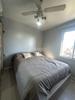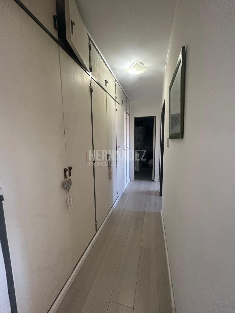 El pasillo distribuidor contiene un mueble amurado con gran espacio de guardado, conectándose con las dos habitaciones y el baño.